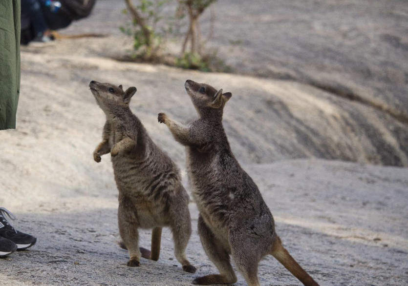 次は野生のロックワラビー探し。オーストラリアの動物の中でも可愛さトップクラスの大人気動物です!