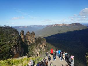 世界遺産ブルーマウンテンツアーでは有名な展望台。スリーシスターズの岩が眺められます。
