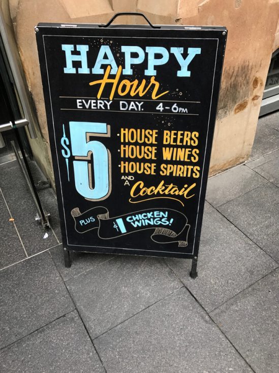 毎日4am-6am にハッピーアワーを開催しており、日頃8,5ドルの一杯がなんと5ドルに!