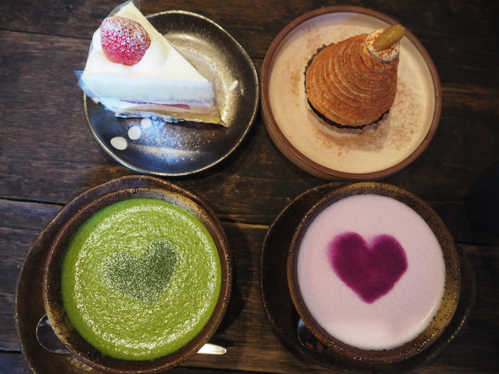 ドリンクは抹茶ラテとスイートポテトラテを注文!これまた日本の伝統を感じさせるような味のある器で出てきたのでなんだか京都のお茶屋さんのような雰囲気。