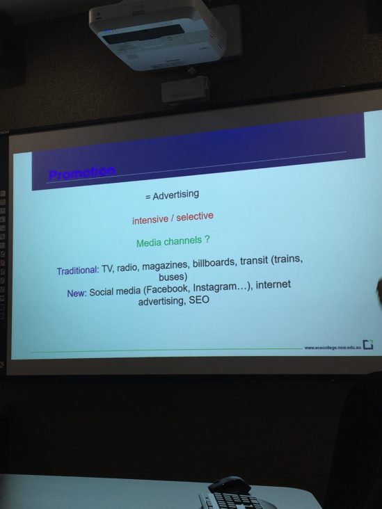 この日はECA Collegeという専門学校で実施されている、マーケティングコースの体験をしました。専門的な分野の授業となると一気に難しいイメージですが、今回の授業は分かりやすかった…!