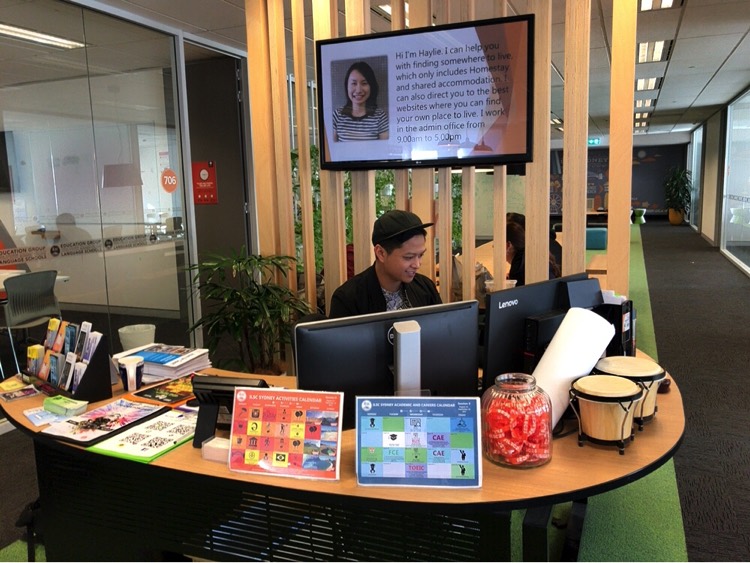 シドニーの中心街で一番大きな駅タウンホール駅「Townhall」を出てすぐ目の前にあります。徒歩1分で行けちゃいます!George StreetにあるWoolworthの隣にビルの入口があって、6,7階が学校です。スーパーのとなりなのでランチにも便利でした。