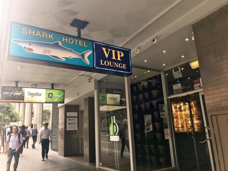 目印は、シャークホテルのこの看板!