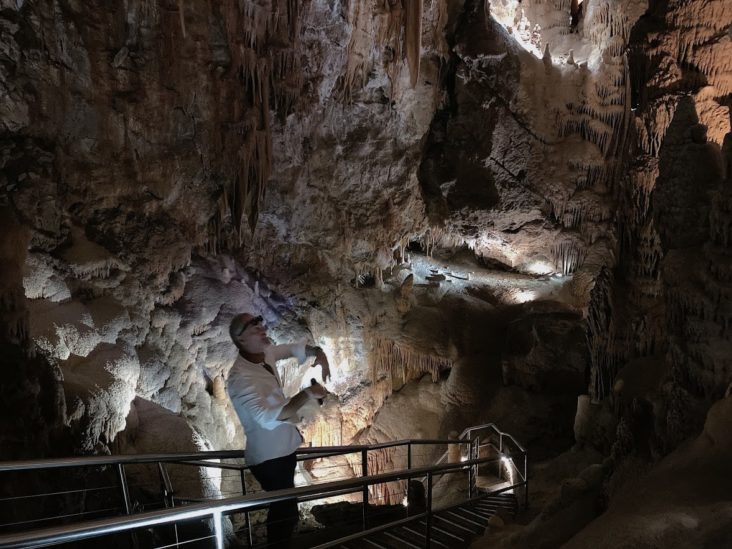 ジェノラン鍾乳洞は、世界最古の鍾乳洞であり日本の秋吉台などの鍾乳洞とは違って縦に長い形をした鍾乳洞だそうです。そのため、鍾乳洞の中はずっと細い階段を上り下りしながら見ていきます。通常は施設の方が、鍾乳洞について英語で説明をしてくださるそうですが、今回のツアーでは特別に、鍾乳洞についてクリスさんが日本語で面白く解説しながら中を案内してくれました。