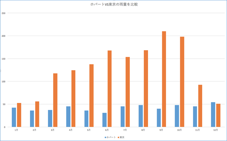 | ホバートと東京の雨量を比較 |