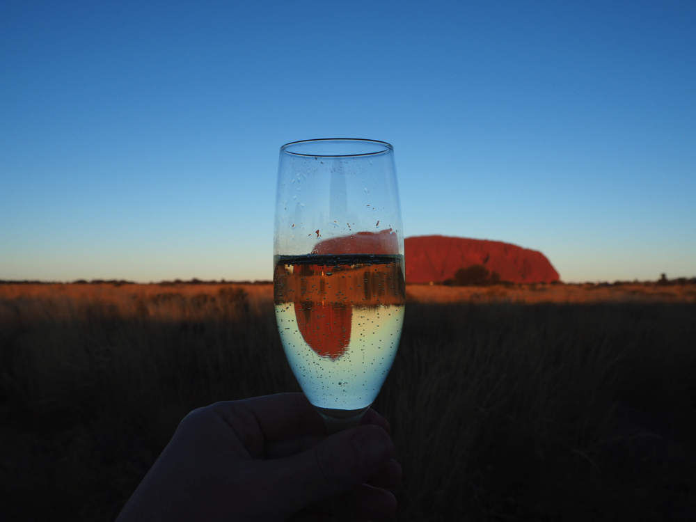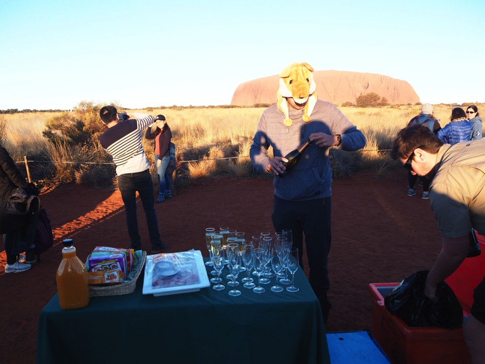 ウルルのサンセットポイントに到着後はシャンパンで乾杯の準備!
