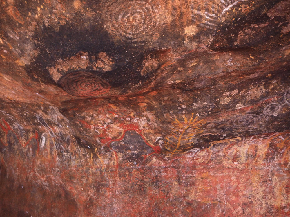ウォーキング後は30分ほどの現地先住民アボリジニの方と現地スタッフによるウルルの歴史などの解説をしながら壁に刻まれた絵などを見て回りました。