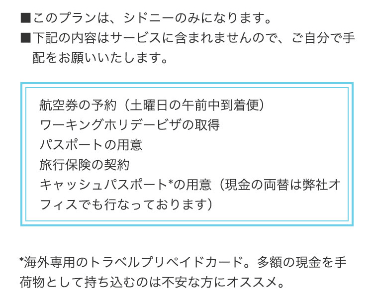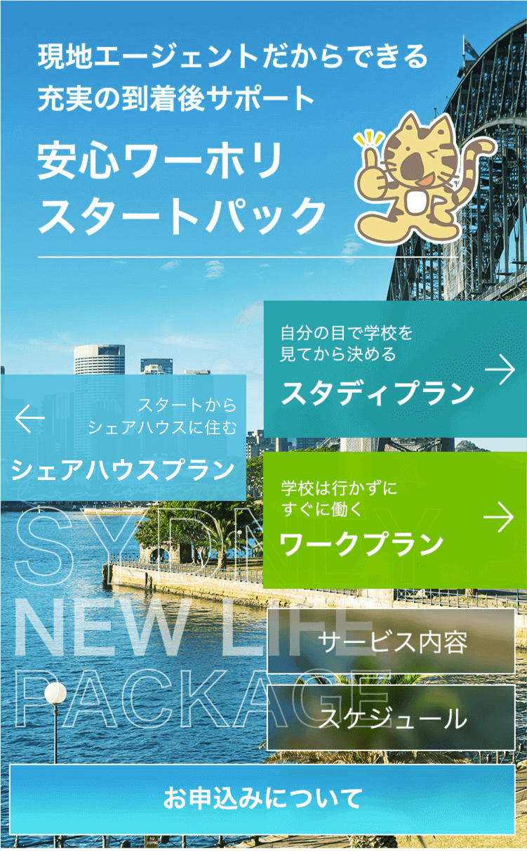 安心ワーホリスタートパックは、シドニーのみ受付が可能です。
