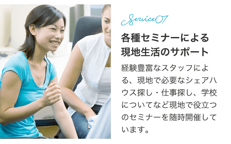 シドニーに到着して、自分の気持が変わったり、やっぱり語学学校に行って英語レベルを上げたいと思う方は多いです。シドニーに到着後、トラトラの担当とカウンセリングをしながら学校見学を組み込んだり、滞在期間を延長したりすることも可能です。